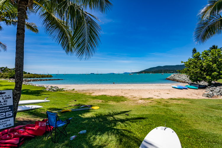 We walk off in search of the Paddle Board Operator and I sit in his chair he has left by his gear. I don’t know if he is in the area or my being in his chair brings him over, but sure enough, I don’t sit long before this amiable Aussie chap shows up and happily takes our credit card for two paddle boards for an hour.