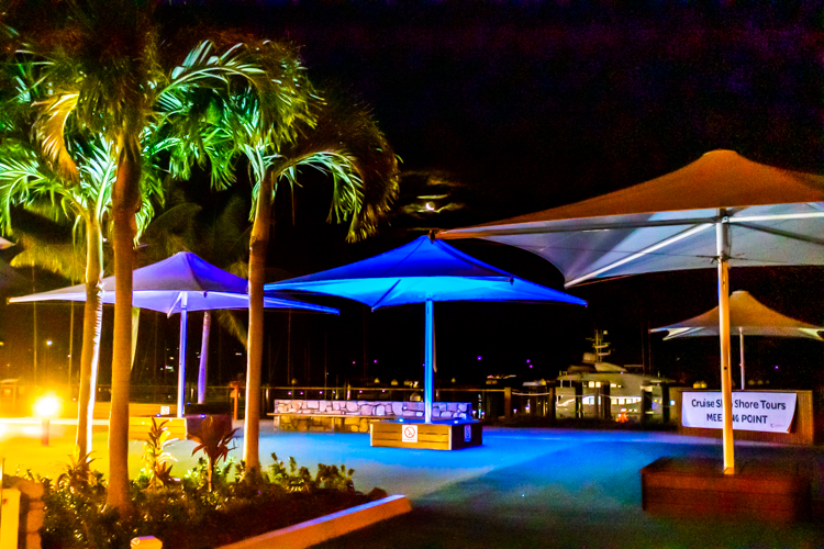 We cruised into Airlie Beach running late this morning. We are due to arrive at 8 AM but we have been warned we will run late due to strong currents and tides running through the Great Barrier Reef at 4-5 knots against us. Now that may not seem like much but consider that our ship, in good water, runs a top speed of 17 knots. This reduces us to 12-13 knots and delays our arrival. So they tell us 10 AM. We arise in anticipation of 10AM and get ready for the day.