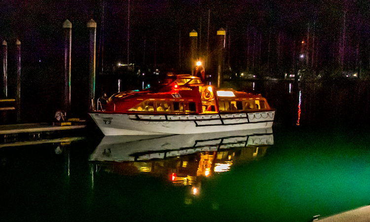 Everyone is friendly and we move about the boat creating conversations with many new and different friends. The sun grabs our attention sporadically as it imbues its light throughout the clouds, casting yellows and reds streaking over the horizon. Darkness falls as we get back to port and we disembark. Is it ironic that we board a cruise ship only to reach a port where the goal is to board another boat?