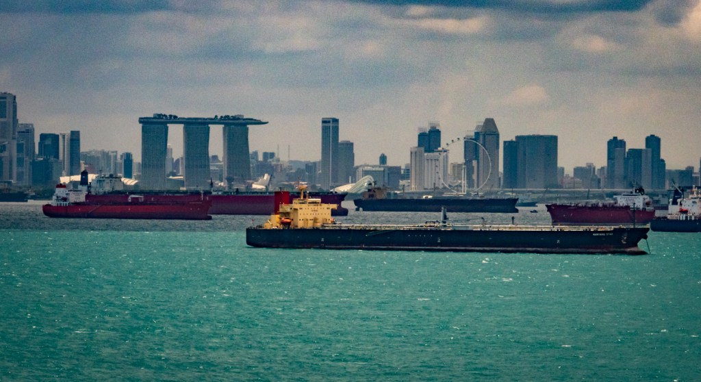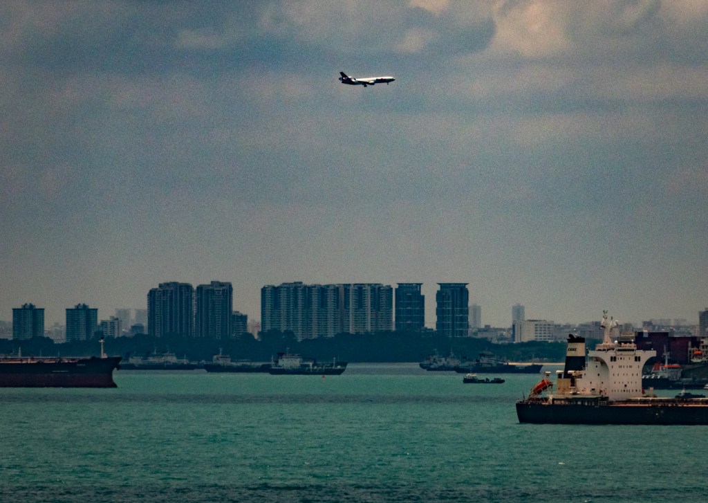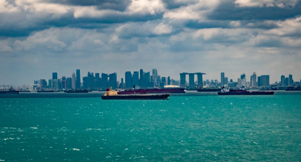 As we travel through the Straight, I look out and see the famous hotel that is three towers with what looks like an island on top. I go get my camera and take a few shots as I don’t know if I’ll ever be near here again. For the rest of the day we see literally hundreds of ships in the water.