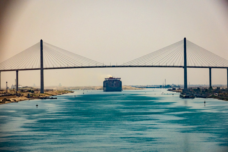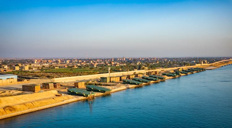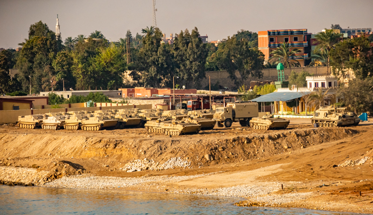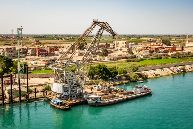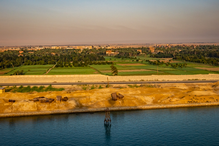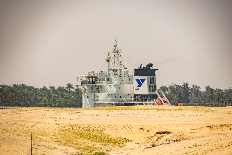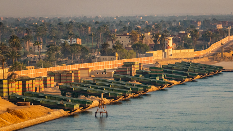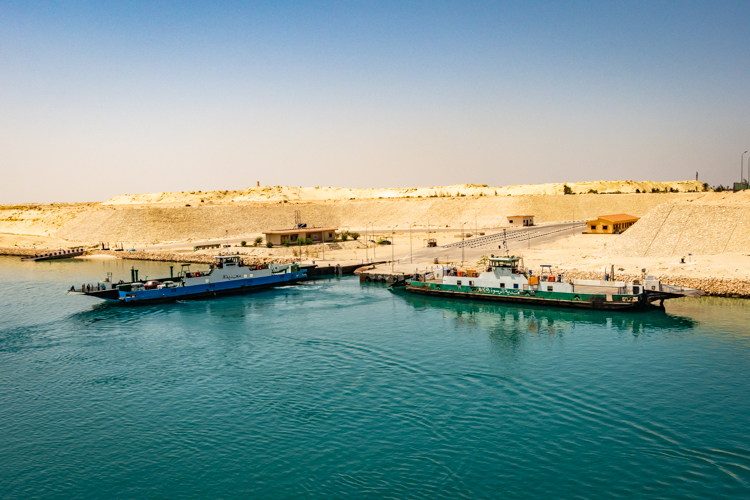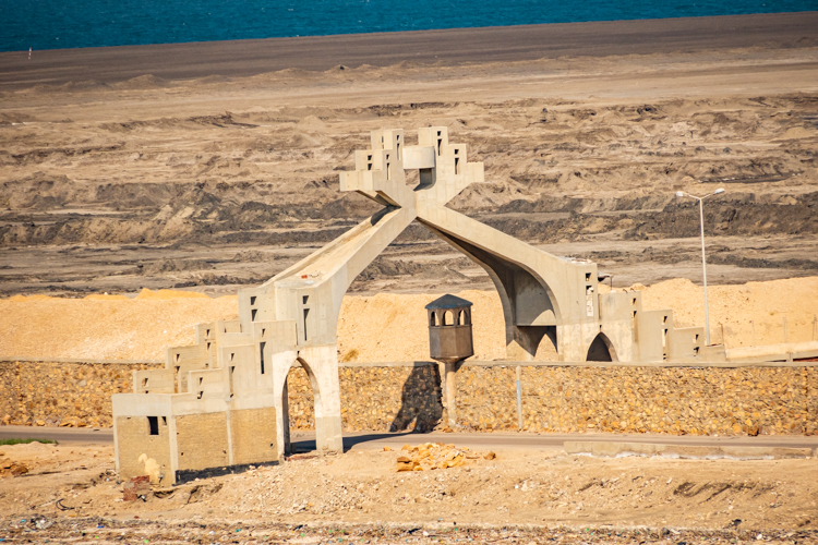The Egypt side is commonly lush with greenery and buildings where the Sinai Peninsula side is dirt and construction. Even though both sides are Egypt, the Western side is the most civilized. Many sections have ‘Floating Bridges’ that are quite interesting to see. A display of Military Tanks greets us at one point. Floating Bridges that ‘Pivot’ across the Canal at other points.