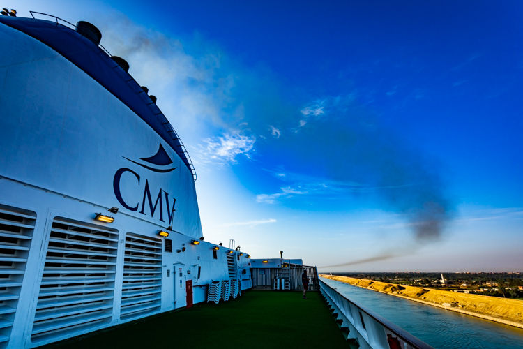 We pass through Port Said (pronounced Sigh-eed) around 3:00 PM and enter the Mediterranean Sea a couple hours ahead of schedule. It seems that because there are fewer ships on the world’s oceans, we got through the Canal without any delays.