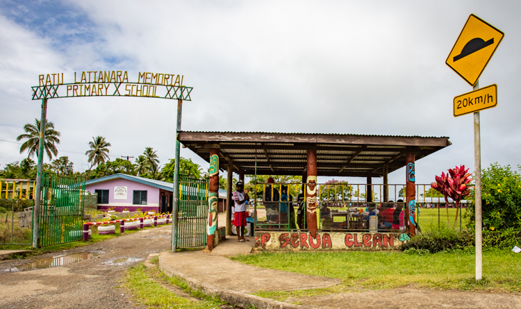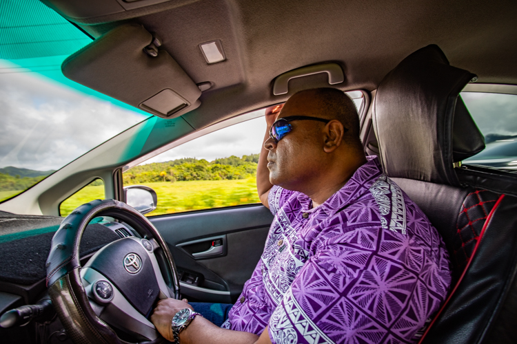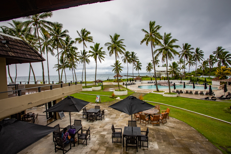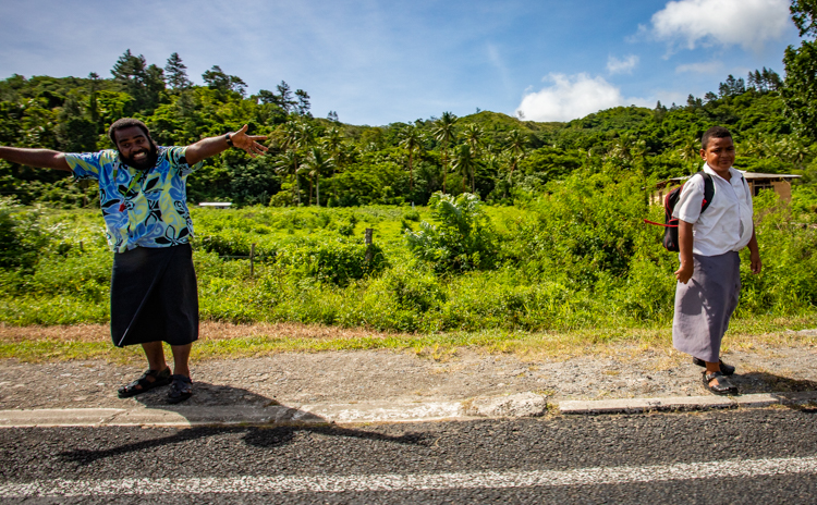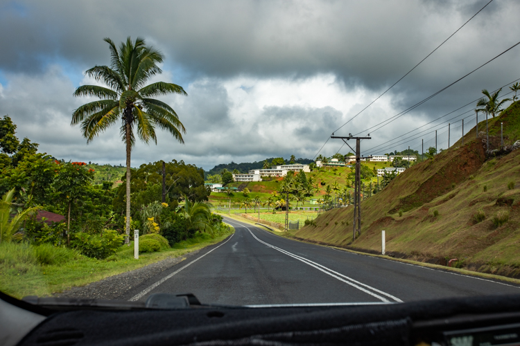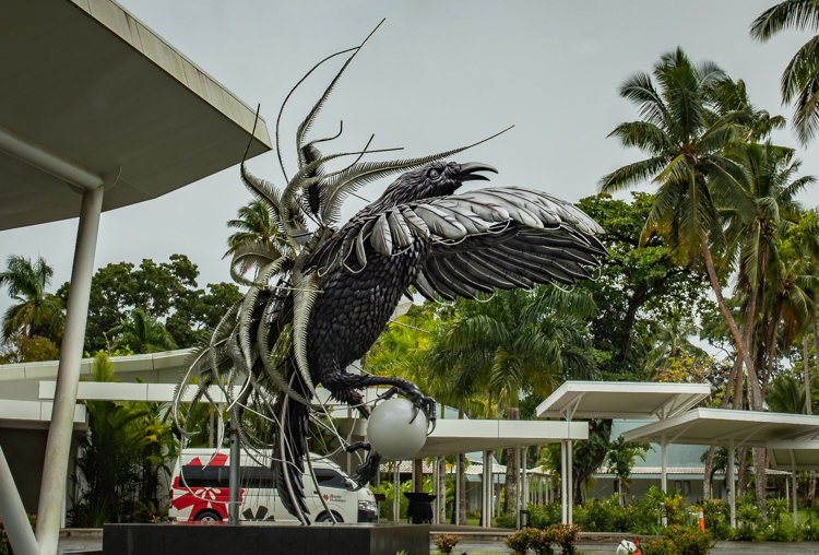 So off we go and Thomas takes us on our way. We drive for about an hour at a time between stops and we see some fun sights. Our first stop is at a Resort that Thomas has connections at and we see how wealthy people spend their time in Fiji. A very nice beach is here along with some scenic views. We finish this stop with some photos of an interesting sculpture of a bird and then it’s on to the next stop.
