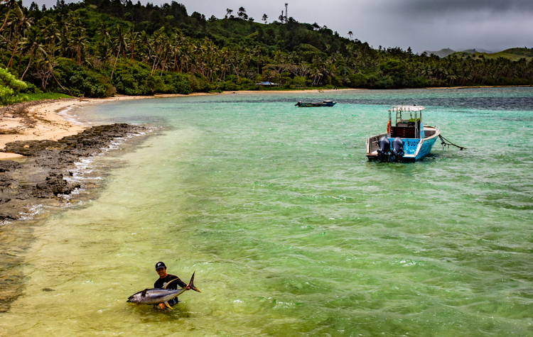 The next stop is at a picturesque location where a wharf and dock protrudes out into a lagoon. I swear I have seen this in a travel magazine somewhere. It turns out to belong to a resort called, “Maui Bay Resort” and we spend some time here taking photos and walking out the dock to the water. As we walk back, a fishing boat has returned and we see they have caught a huge Yellow Fin Tuna, a delicacy to us. We encourage them to display the fish to us and they do. Camera lenses play and capture all of this as we return to our taxi.