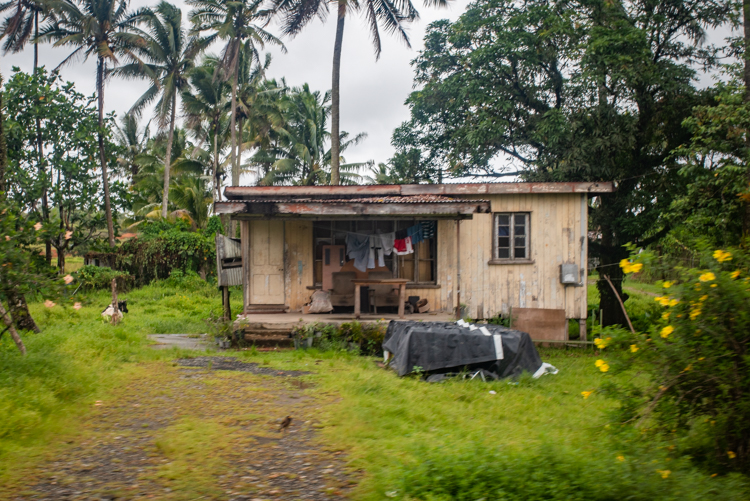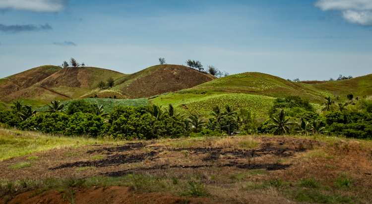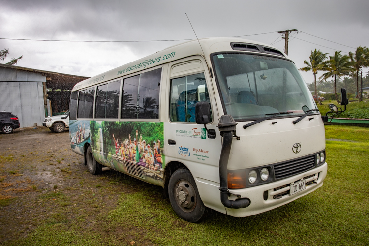 Today we disembark the ship after breakfast and find our tour operator easily, especially because we had WiFi last night and saw an email that told us what to look for. We board a small bus, 30 or so people, and the bus waits for 2 people that never come. 45 minutes of waiting and many people get restless and ask to start the tour. We get underway and our guide, Joe tells us about this part of Fiji. We retrace part of the route from yesterday’s tour. But after a half hour we turn off and head to a small Fijian Village, the Riawanqa Village.