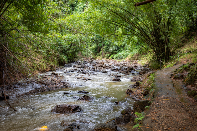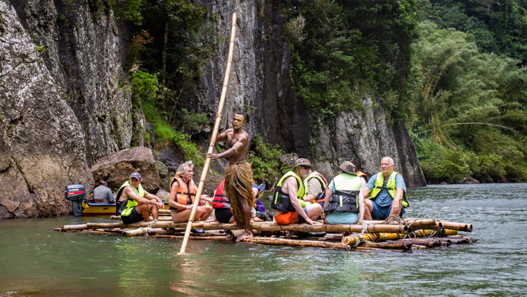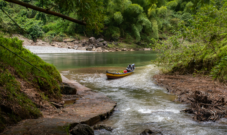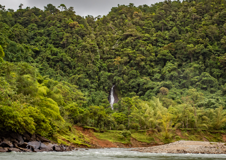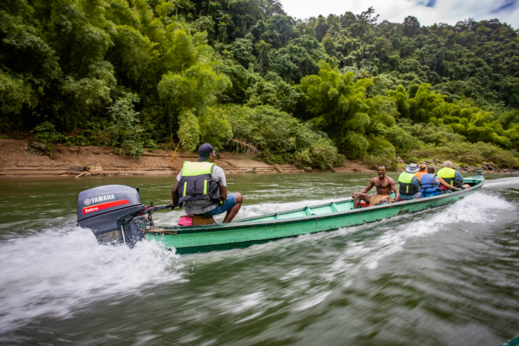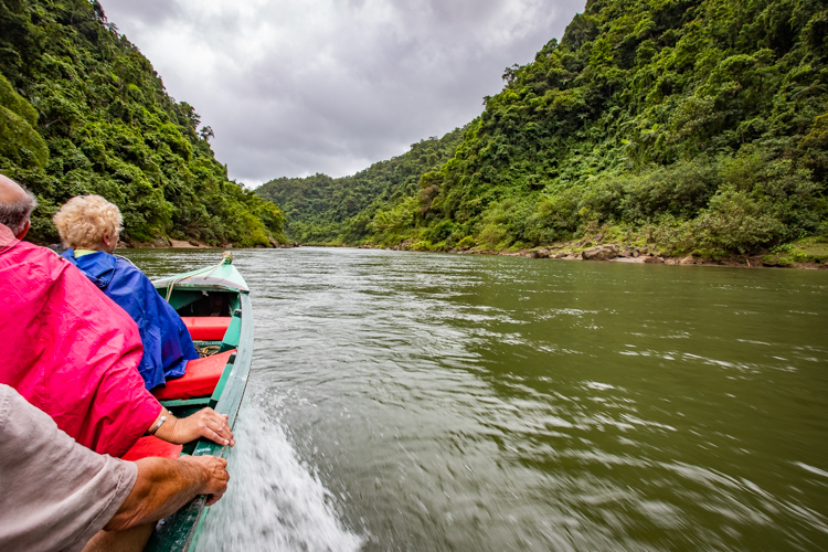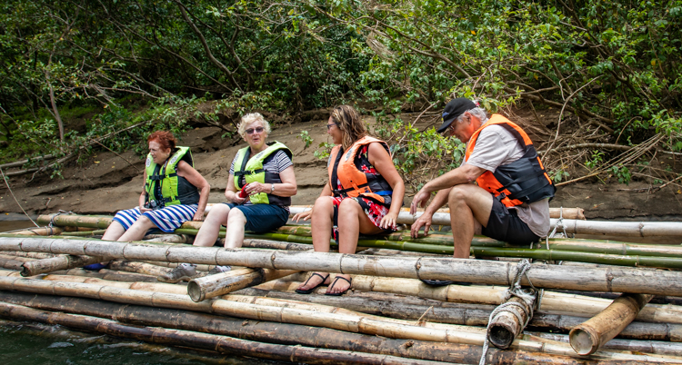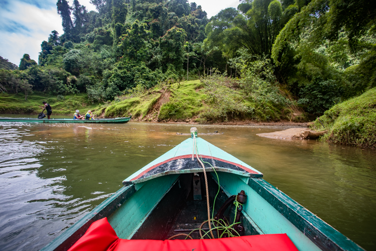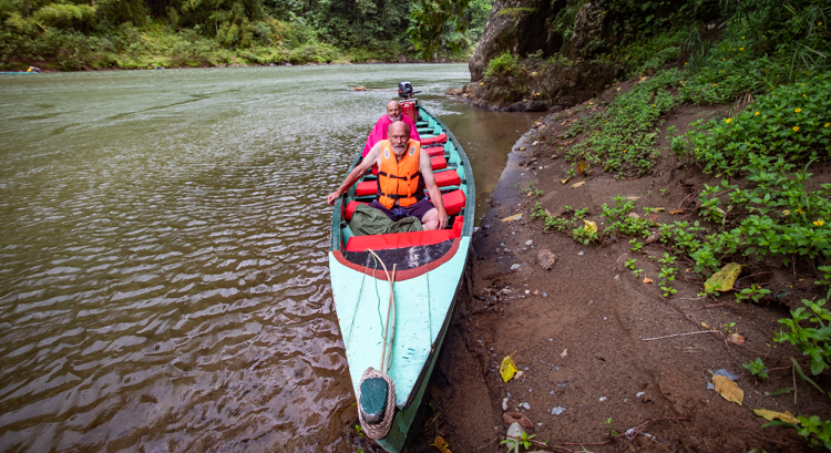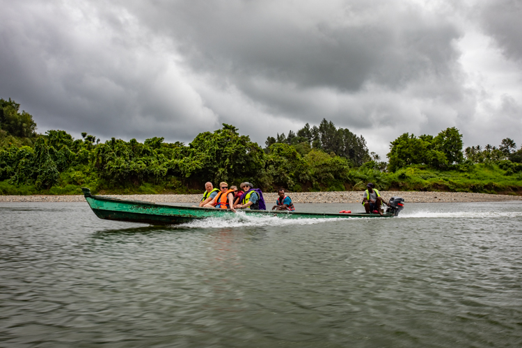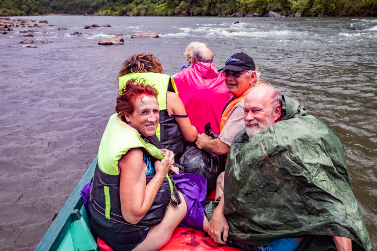 The rafts don’t go far as this tour doesn’t have the 3-4 days it takes to float back to the village. So we soon take back the passengers from the rafts and we power back down the river to the village. Once back on dry land, we change out of our wet swimwear and into dry clothes. Why? So we can walk through the rain to our next adventure, of course!