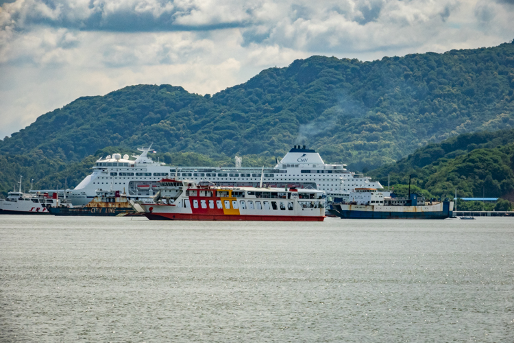 An interesting note, every 3 or 4 buildings or houses, there is a rack out front with 2 liter bottles of an amber liquid. We inquire and Bodie tells us it is gasoline and the vast amount of motorcycles on the island can stop and purchase a tank of gas anywhere. Bodie then drives us back to the Ship, stopping occasionally for photos at random highlight points such as views of our ship and a fun walkway and we arrive back at the ship without incident. We pay Bodie the originally agreed upon rate and give him a tip of about 70,000 (LOL, that would be about $5 USD) and he is happy.