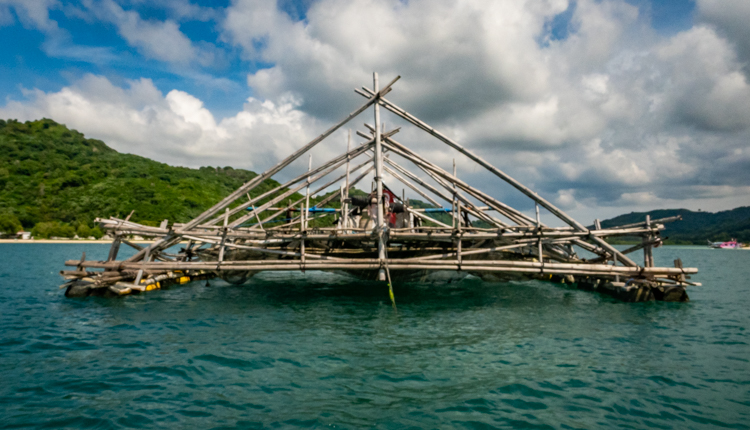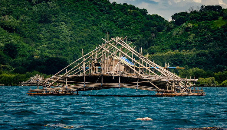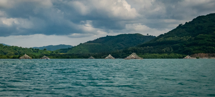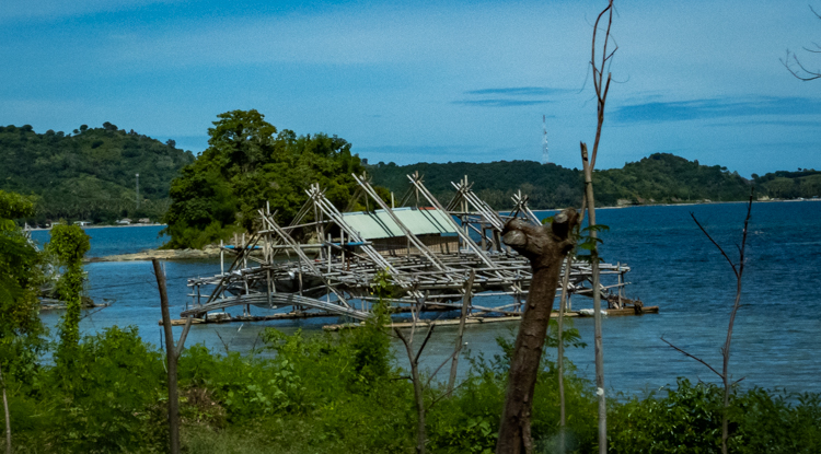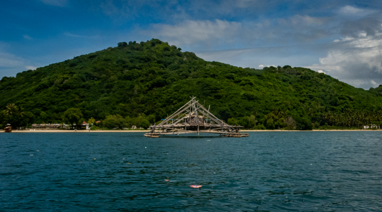 On our travels across the bay, we see many bamboo structures that are used for fishing although we never find out quite what the details are. There are nets beneath the structures but we never see any fishermen or others on them and the language barrier we have with our boat guides doesn’t help at all. We arrive back on shore and sure enough, our taksi driver is there. Upon donning our street clothes which have been on our boat, we also are pleased to see all our money and possessions are still intact. We highly commend the integrity of the people here.