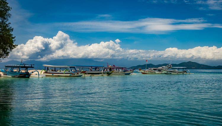 We are brought to “Gili Nanggu” island and we strip off our street clothes to reveal our swim outfits underneath. They provide us with snorkels, masks & fins and we get out and first take photos of the line up of native watercraft on the shore. Our cameras and money stowed in open sight on the boat like any good tourist would do and we are off in the water to see what we can see. We do, after all, have to trust the locals to treat us well and help protect us. It is their reputation, after all. In this place, there are no underwater cameras to rent so you will have to trust me on my descriptions of what we see in the water.
