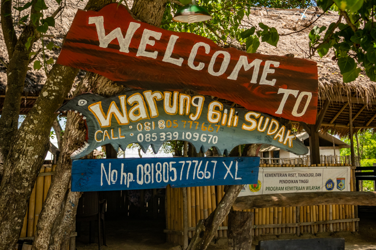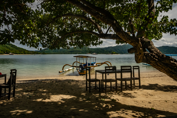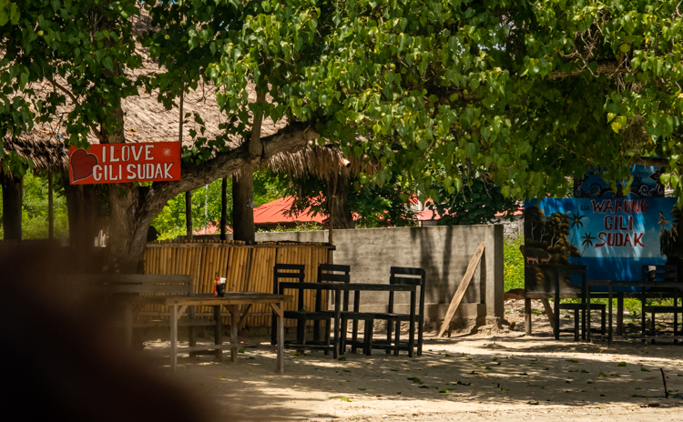 Next, the boat guys take us to “Warung Gili Sudak” island for lunch and it turns out there is a rustic BBQ restaurant run by poor locals and being the adventurous travelers we are, we order “Ikan Bakar” (Grilled Fish which is suggested, is Mahi Mahi but we see the raw fish and it is Jet Black) and Cah Kangkung (Fried Water Spinach which is quite spicy). Both are quite delicious and we are quite satisfied with our choices.