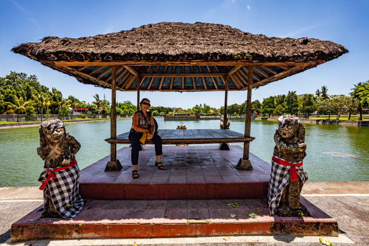 Okay, our fears for our lives aside, we pass Rice Paddies and different kinds of transportation as we travel along. Danny takes us to “Taman Mayura”, an old temple where we pay 100,000 to enter. That is about $7 USD. Again with the currency difference here. Danny ‘lends’ us the money, because even though we told him we need to go to an ATM, Danny also appears to be a bit ADHD and his ability to prioritize the needs of his customers is a bit lacking.