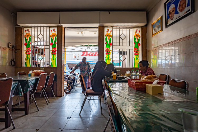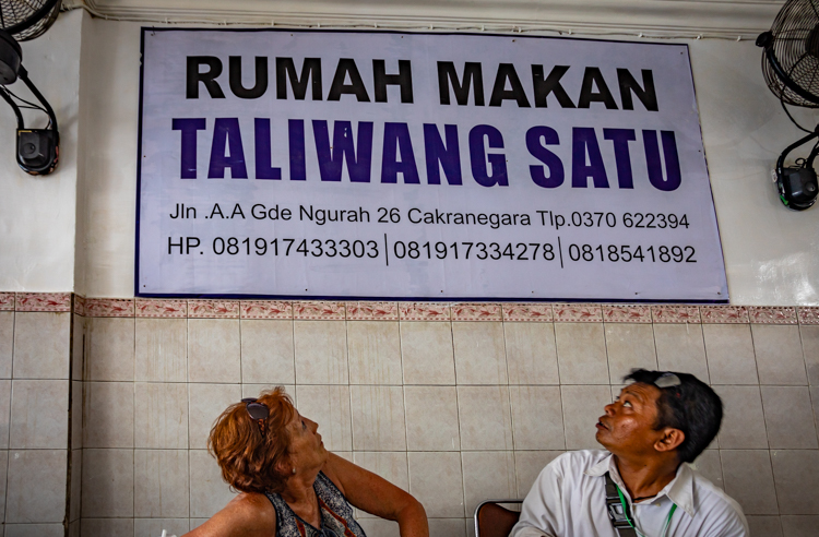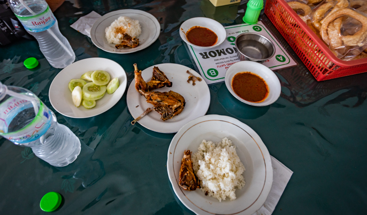 After we leave, Danny takes us to have “Chicken Taliwang” or “Taliwang Satu” which we had heard about yesterday and he found us a restaurant, “Rumah Makan” that served it. We purchased the meal which came as a whole chicken including the head and it appeared to be deep fried. Now you are probably are thinking that is a huge meal but the chicken wasn’t even as big as a Cornish game hen. Think Game Hen and now think emaciated. It was very delicious though and it was served with rice and a spicy sauce that satisfied. The fun of the meal was we were given no flatware. So the meal was “Finger Food”, even the rice and sauce. There were no napkins to speak of unless you consider facial tissue as napkins. But they did have a wash sink with soap when we were done. Towels to dry my hands? Well, it’s warm here and it doesn’t take long!
