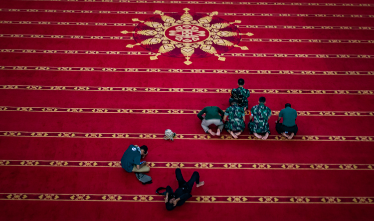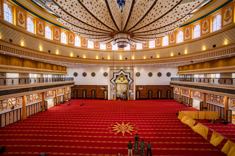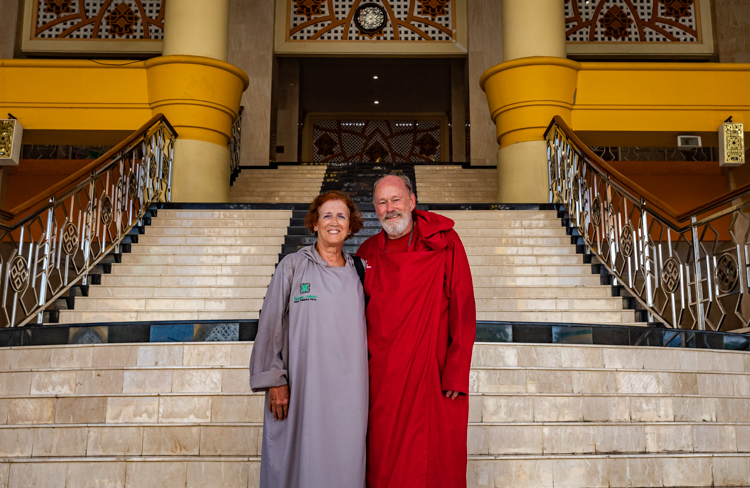 In order to visit this magnificent Mosque, we have to don robes which are hot and we detect an odor because it is clear they are not often laundered but we did not come with our bodies covered in cloth. It is very hot and humid here and I can’t imagine visitors to this place covering all skin. And you don’t have to. Unless you want to enter a Mosque. There is the rub. So we don their proferred robes and enter the Mosque with a guide who proceeds to explain the operations of the Mosque and my camera drags me several feet or yards or meters from the guide and I try to tell it to be respectful of the guide but my camera is boss and rebels from the rules and gets its way.