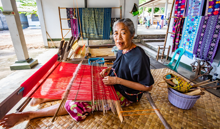 Danny then takes us to a “Weaving Factory” where women spend months weaving fabrics on looms and their results are fabulous. We end up purchasing some gifts for helpful friends back home that are pitching in with home chores to help us do this trip!