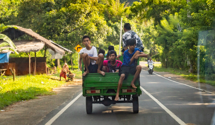 The monetary exchange rate aside, Bodie takes us around the south of the bay we are docked in and we take in the sights. This place is about 75% Muslim and there is a Mosque approximately every kilometer. Lomboc is nicknamed, “The Isle of 1000 Mosques”. I’m not exaggerating. He even shows us a “Lomboc Ferrari” which brings us a chuckle.