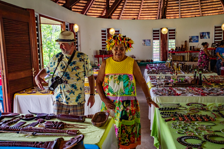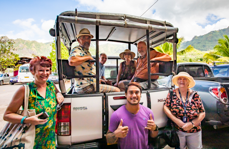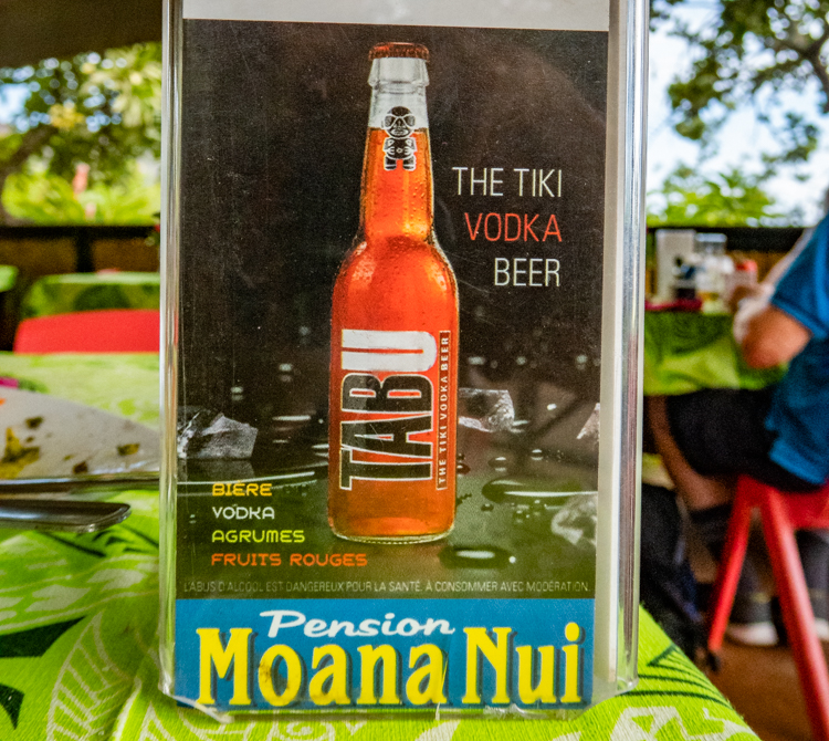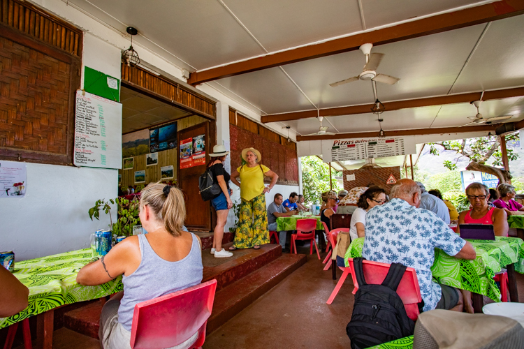 Our walk back to the ship reveals a restaurant, Pension Moana Nui, where we find a couple local dishes we have heard about, Goat in Coconut Milk and Fish in Coconut Milk, a sort of ceviche. So food orders in and a cold beer in hand we sit and wait for our food to be prepared. We have to keep reminding ourselves that we are on Island Time and we visit with many other shipmates in the restaurant including several of the crew and entertainers on the ship that we have gotten to know.