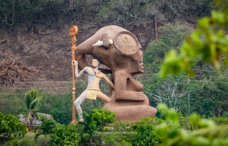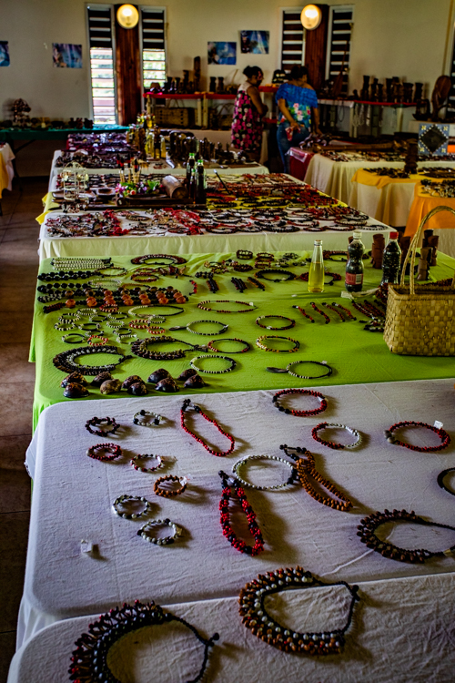 Tajaka takes us to a shop where the locals make handmade jewelery and wooden instruments. Happy locals try to get us to spend money with some success but not much. A playful youngster preens for my camera and everyone is friendly. Then it’s on to an archaeological site where they are uncovering an old village that was consumed by the jungle. We find it amazing how people lived and survived. A photo on the beach of us with our guide and it is a good day.