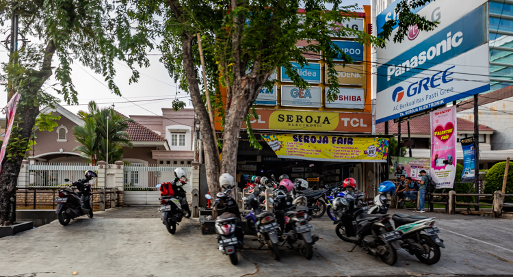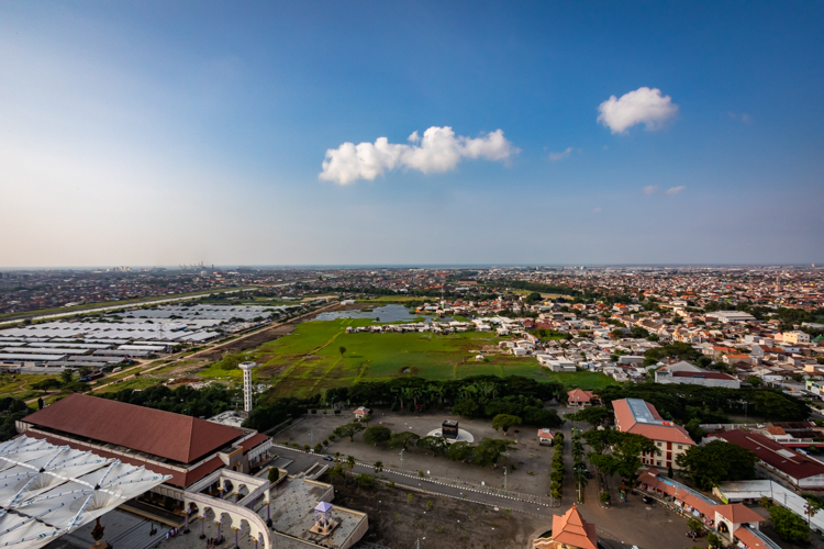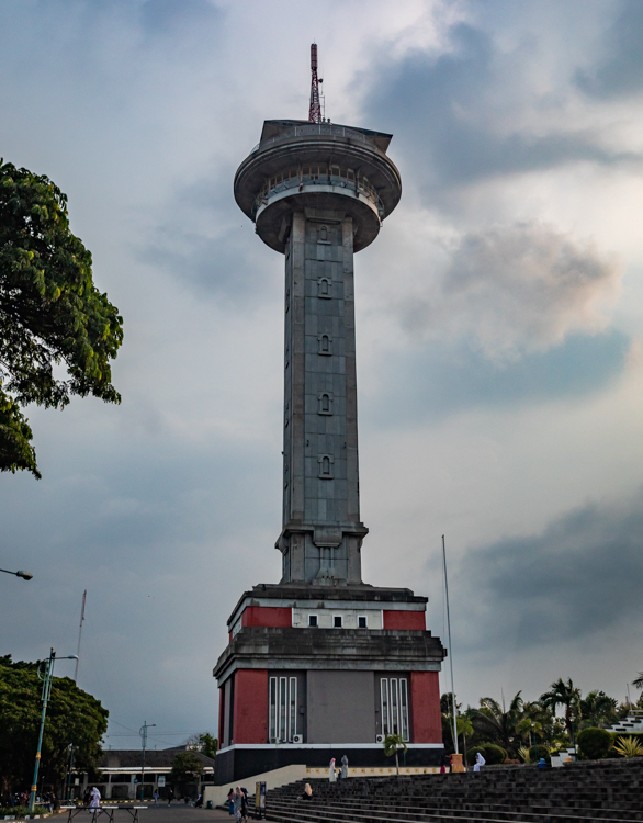We arrive at “Masjid Agung Jawa Tengah Temple” where there is a 20 story tower to look over the city. We don’t bother going in the temple but instead just pay to climb the tower. Another 20,000 ($1.50 USD) and we ride an elevator up for some aerial photos. A group of playful Boy Scouts grabs our attention briefly and one of them speaks English so we are able to chat with them.