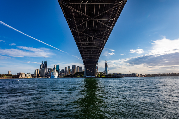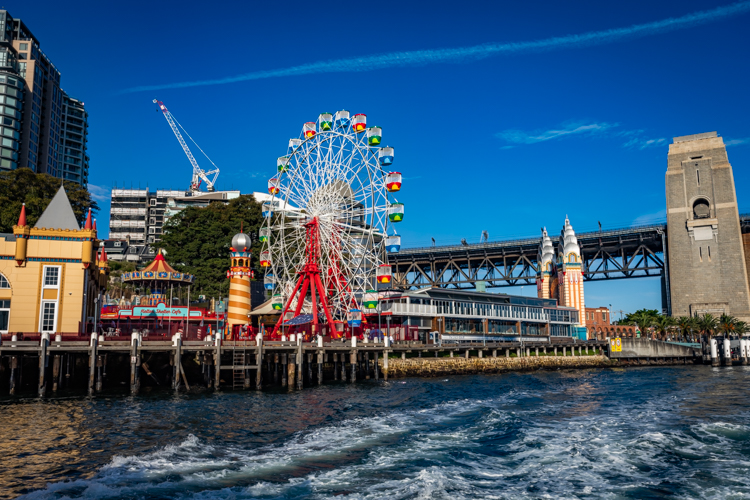After another mile walk our feet convince us they were right and we turn back and head for the Ferry to Barangaroo which drops us very close to the shuttle bus stop back to our ship. More views of the Opera House under the Sydney Harbor Bridge and our cameras are happy again. We even get to see a glimpse of “Luna Land”, an amusement park near the bridge as the sun starts gleaming off the windows of high rise buildings! A luxury yacht cruises by and we wonder if it’s someone famous. It certainly is someone rich!