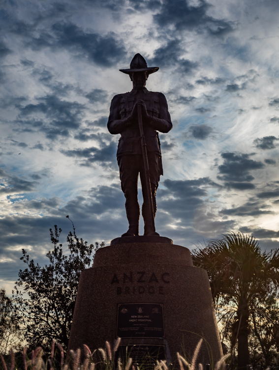 We meet up with a couple shipboard friends and get back in the queue for the shuttle bus which easily has 100 plus people in the queue. Doing the math which includes a 47 seat bus (standard bus around the world) and an ‘every half hour’ estimate, this tells our aching feet that we will be in the queue for likely 1.5 hours, one of our group hails a taxi and questions the driver as to price to take the four of us back to the ship. With an estimate of $25 AUD, it’s a no brainer and we hire him to take us back. We knew a passenger that was 4th in the queue for the bus and when we finally get back on board we arrive before her. This was definitely a good decision! A couple roadside views produce shots of a fun sign and a statue.