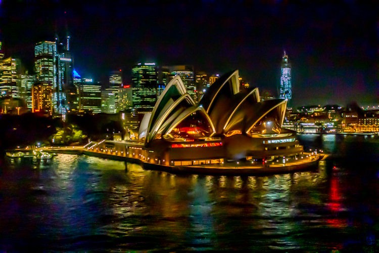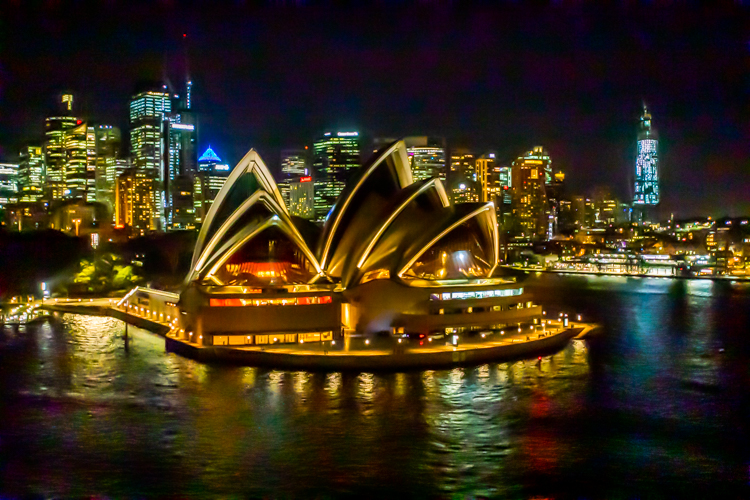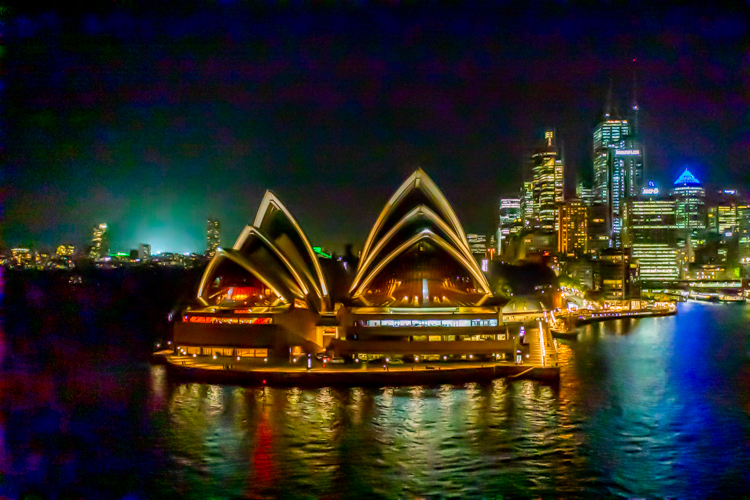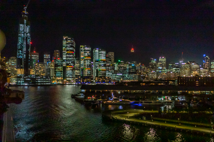 Back on board, we go to the pub and another fellow passenger friend tells me of an IPA Beer that I hadn’t found yet that is much more to my liking and we imbibe and visit as we share the days stories. Back in our room, we shower and refresh and go get a bite to eat for dinner. As we are finishing our meal, the ship leaves the dock and heads out. That is our clue to head up top with our cameras to get night shots of the Sydney Opera House after dark.