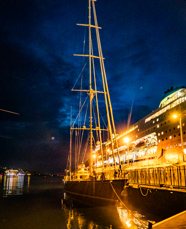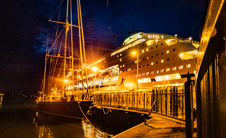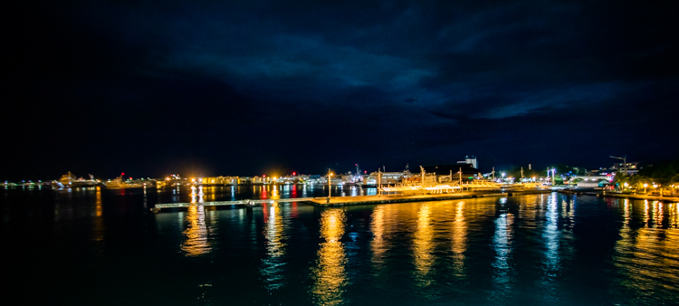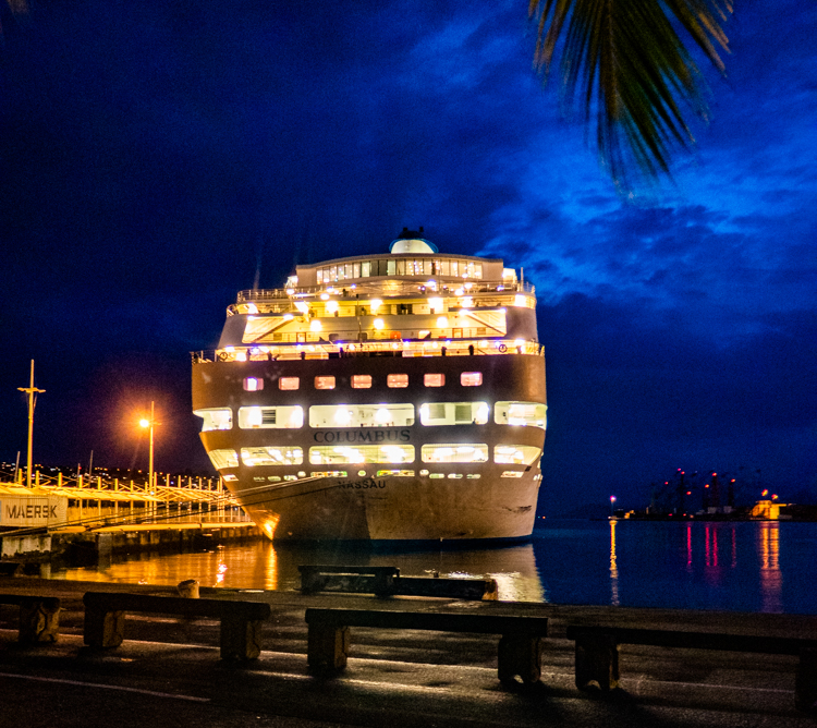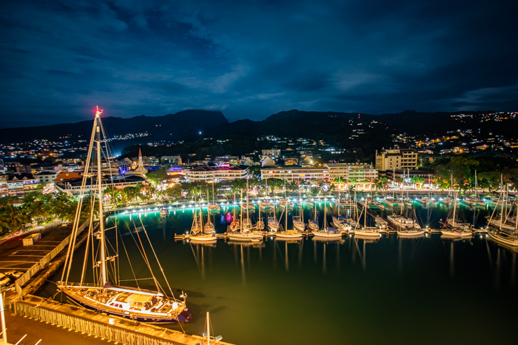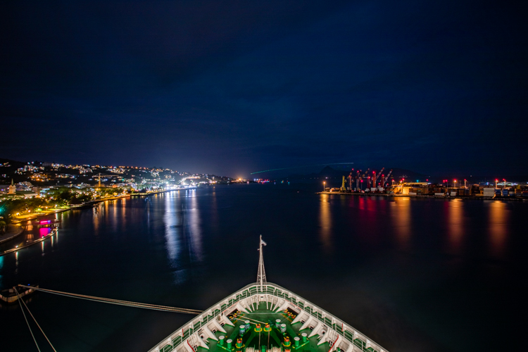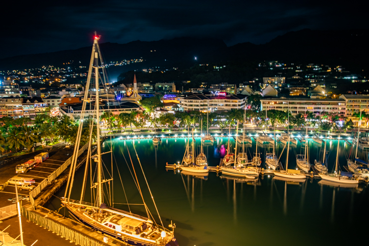Back on board, I take my big camera up on deck for some nighttime time exposures of Papeete before we depart. Then a glass of wine and back to the room to upload photos and finish the blog. Tomorrow we’ll arrive in Bora Bora early so as the ship sails out of the harbor I find myself finishing up the blog and photos.