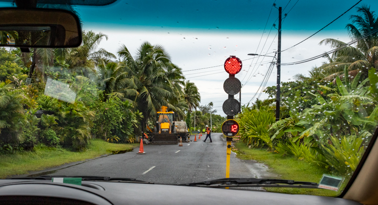 We arise early and get ready for our 8 AM Tour of Tahiti. Right on time, we walk out and our ride, Tahiti Eden Tours, is waiting for us. But, alas, I should have come out earlier as someone else has my front seat “Photo Seat”. Oh well, I climb in the second seat and soon figure out I can open the window and point my camera outside.