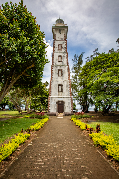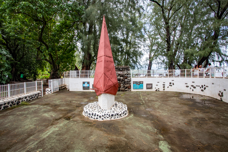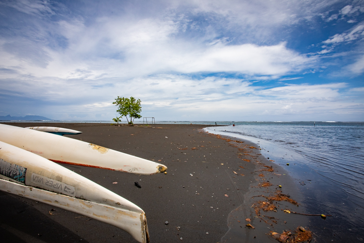 This is a black sand beach in an historical area of the island called Pointe Venus. The first lighthouse in the South Pacific is here, the Tepaina Venuti, built in 1867, designed by the father of Robert Louis Stevenson. During WWII, the natives painted palm trees and coconuts on the four surfaces and the Japanese could not find a reference because of this.