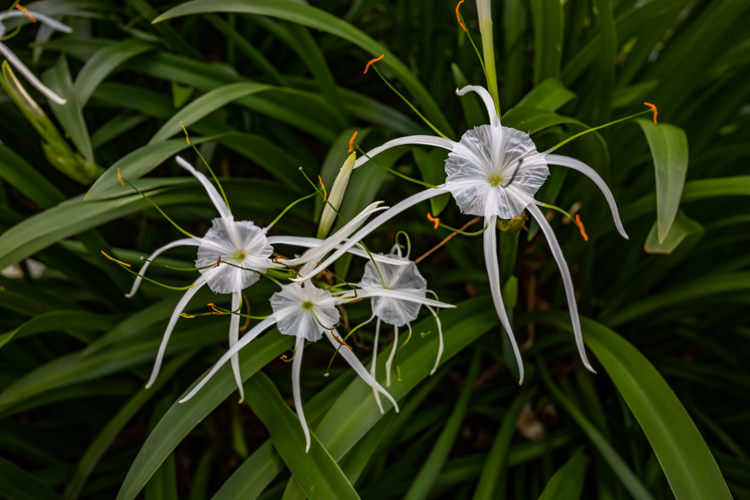 Our hike take us through a totally different environment in the interior that is hot, humid & dark. It is amazing that we find a place that has different environments only a few yards apart. We walk along and the paved trails, like a boardwalk, lead us around with occasional signs explaining what we see. Jasmine Vines climb the trees and occasionally smother them, causing the trees to die which lets in more sunlight so other trees and vegetation can grow.