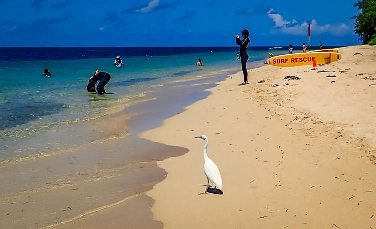 The snorkel tour comes to a close all too soon and the boat takes us back to shore. We take our snorkel gear around the island and back out into the water to find more fun stuff. We even see some man made pipes in the water and I follow them for a while. Back on shore, I chat with some Aussie Lifeguards and find out this tiny island has its own Desalinization Plant to stay Ecologically Stable.
