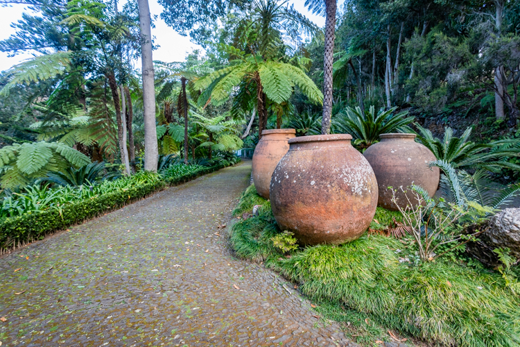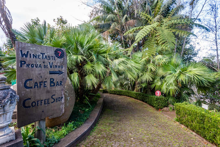 At the top, we get out and look around us. There is the advertised Botanical Gardens at the Palace and we go over and pay 25 Euros to enter. A pleasant downhill walk on different kinds of paving stones winds through the gardens and brings us to the Madeira Wine Tasting Room. So we taste two Madeira wines, one sweet and one dry. Both are quite pleasant on the palate and we leave the Tasting Veranda satisfied. The tasting room happens to be at the bottom of the hill in the gardens and now we find a different path to ascend back up to the top and the exit to the gardens.